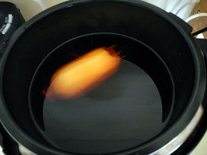 将融化了的糖水,和莲藕放入高压锅内。(这里我用的是电压力锅)