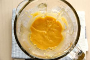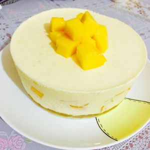 取芒果200克加入搅拌机搅拌成糊状。 倒入锅加热一边搅拌一边加入吉利丁粉。加热50度的样子。 等吉利丁粉化后纳凉备用、