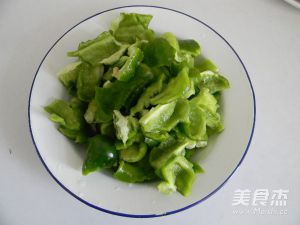 倒入青椒,翻炒几下!可依个人爱好,青椒喜欢软些多加热一会!