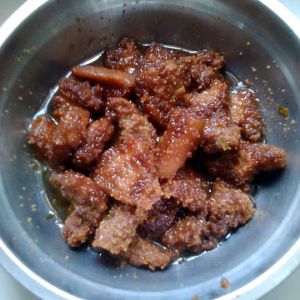准备材料,酱油,盐,粉,五花肉。五花肉切块。