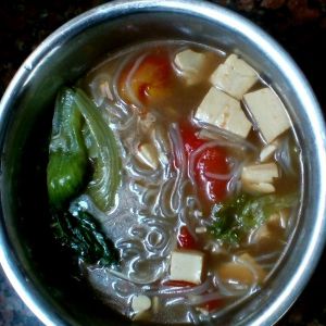 豆腐和红薯粉下锅,最后加蔬菜哦