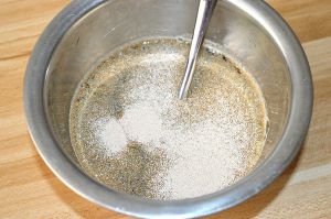 将酵母放入红糖水中拌匀放置一会;