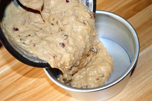 将搅拌好的面糊倒入6寸蛋糕模具中;