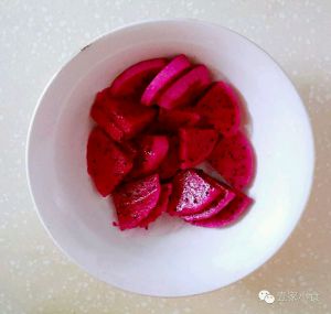 ②火龙果去皮切片。