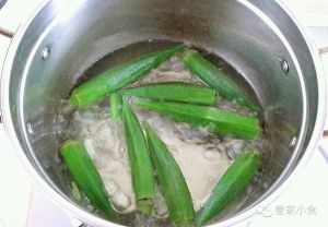 ①秋葵洗净,清水焯熟,捞出晾凉。