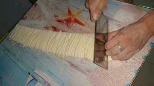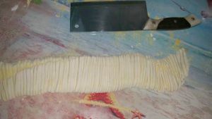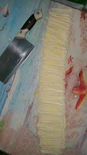 叠一起,每层都洒苞米面,防粘,用完还可以收起来熬粥