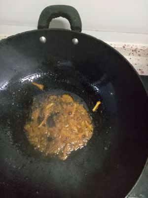 锅里放油,放入姜丝,炒出香味,放进白糖,喜欢吃甜的就多加