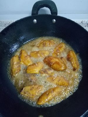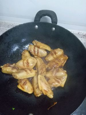 把糖炒化,炒变红色,因为鸡翅的颜色好不好看,在于这糖色的深浅