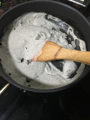 粘米粉溶入水中后混入进豆渣,倒进无油锅内。不停翻搅至水分收干到个人喜欢的黏湿度。关火,摊凉。