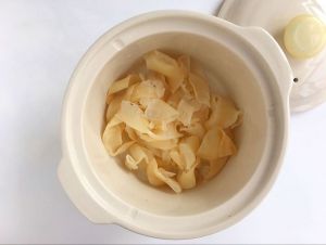 泡发泡发好的花胶洗净干净,倒入炖锅中。