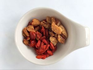 无花果、红枣和枸杞用清水冲洗一上,切成小块备用。