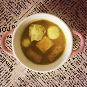 我买的成品咖喱块,用了两块,看你们自己的量来添加,我用的小奶锅。