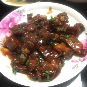汤汁烧到见底之后,淀粉加入冷水(2汤勺左右)混合均匀后倒入锅里,烧至收汁,(加淀粉后排骨最好翻一下,不容易糊)收汁后出锅……撒上葱花