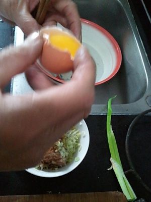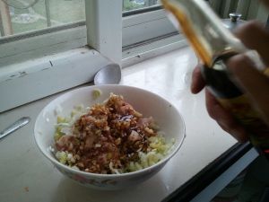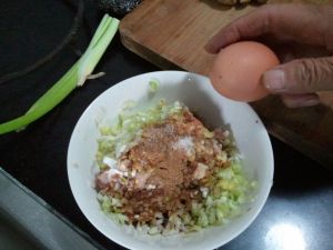 然后往肉馅里依次放入酱油、料酒、盐。还有最重要的就是放入生分(起作用是起到粘合的效果)