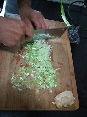 把切好的葱姜放入肉里,在放入五香粉、可入一个鸡蛋清,记住哦是鸡蛋清,不要黄的。