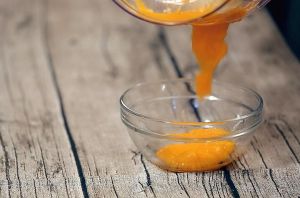 将芒果切成块儿用厨师机或料理机打成果泥,放一旁备用。