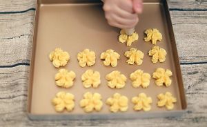 将面糊装入裱花袋,并挤入烤盘,用你喜欢的裱花嘴就可以啦。