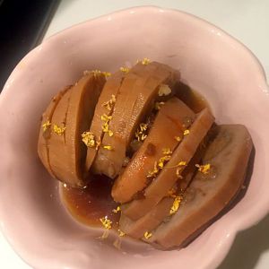 用牙签固定好两头,冷水下锅放入红糖和些许桂花(金桂)开始煮吧。我煮了两三个小时哈哈