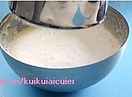 酌情加入牛奶,注意慢慢加入牛奶,不一定都放进去,觉得面糊下落时流动顺畅成缎带状即可;将调制好的面糊盖上保鲜膜,放置30分钟。