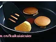 两面都煎好后取出,两片中间夹入红豆沙食用。