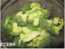 西兰花一个,用手掰开,在盐水中浸泡半小时,取出沥干水