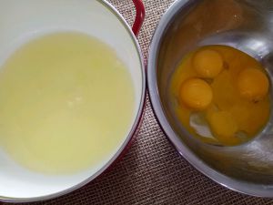 把蛋白和蛋黄分离到两个无油无水的容器中
