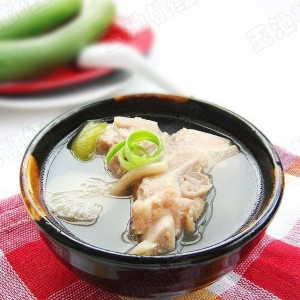 丝瓜洗净去皮切滚刀块,蘑菇用手撕成小块。放入排骨汤中,继续煲30分钟。