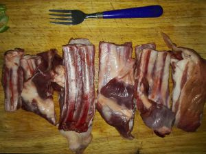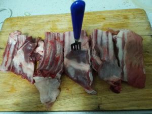 将羊排用叉子使劲扎,让羊排布满小眼眼,方便下一步腌制入味。