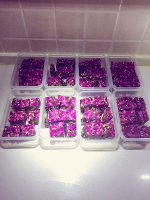 配料忘记拍了,我是阿胶打成粉跟一半玫瑰花粉还有黄酒泡了24小时。剩下的玫瑰花粉跟冰糖一起。