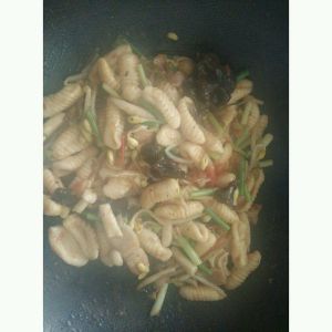 先炒配菜,加入生抽,老抽,料酒,五香粉,加一点开水,快熟的时候加入猫耳朵,加入盐!翻炒出锅!宝宝能吃一大碗!