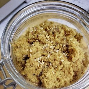做好后拌入芝麻,也可以根据喜好加点海苔丝之类的。成品如图