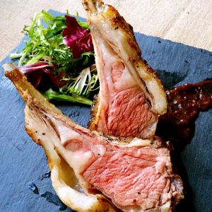 羊排出炉后静置5分钟再切开,这样可以更好的锁住羊排内部的肉汁,再依据自己喜欢的口味搭配酱汁。