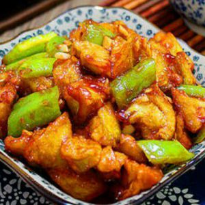 把青辣椒放入锅中煸炒一下,将碗汁倒入锅中,然后大火收汁翻炒均匀,出锅在倒少许香油即可