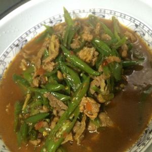 锅里倒油,油温上来了就放瘦肉,然后放入青椒,最后倒芡粉水,炒瘦肉一定要大火
