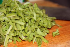 贡菜干,需要泡水变软,切成1厘米左右的小段。