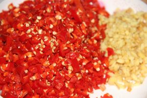 关小火,慢慢的等辣椒变色,待辣椒变成透明……这个过程需要的时候比较长,需要不停的翻炒。