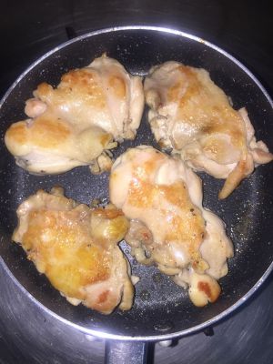 不粘锅不加油,用鸡皮那面先煎,中火煎至出油