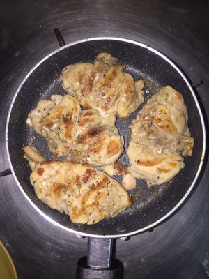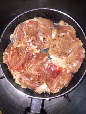 鸡皮转金黄色即可翻面煎,皮那层也可再洒黑胡椒粉,加入黄油增香,也可不加。