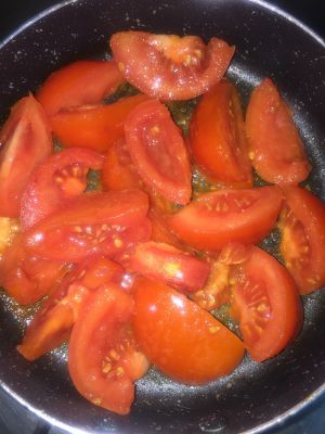 蕃茄去皮切小块,入油锅翻炒