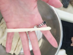 面条用手搓圆,一边搓一边拉,动作快的可以直接拉好放入锅里