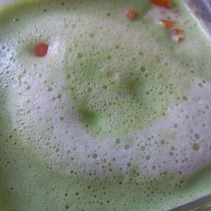 煮开后直接放入料理机里打碎 最后放入胡萝卜丁装饰