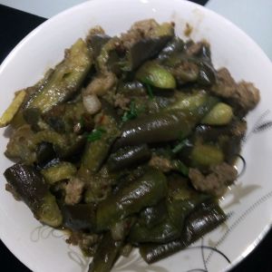 两三分钟后加入煮好的茄子 最后滴点酱油以及料酒 再加入适量的盐即可起锅