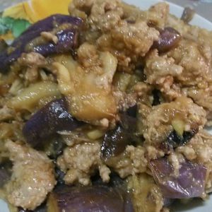 再把茄子倒进,放点酱油,盐…再翻炒,肉完全熟后起锅