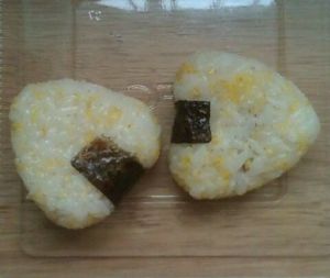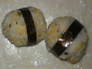 捏成球状裹上紫菜条,肉松芝麻饭团
