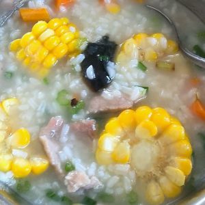 煮到米开始有点开了加入一半的皮蛋(皮蛋切小块),瘦肉,这时候火可以关小一点点