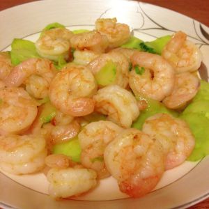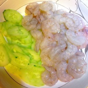 放入少量油,加入五香粉,葱姜炒香,放入虾仁!微微变色放黄瓜翻炒,少放一勺盐即可出锅装盘