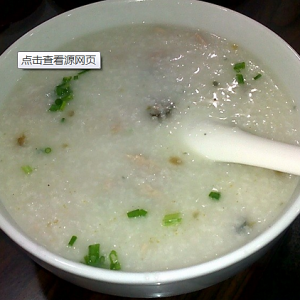 5.待米粒煮至较浓稠的时候放入姜片和腌制好的猪肉,随后再放入切碎的皮蛋