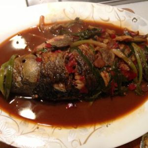 油烧热加入生姜,炸香后再加入鱼、煎2面黄时加入花椒和辣椒豆瓣酱、炸出香味再家黄酒和酱油、醋。少许盐(因为豆瓣酱有点咸)、一勺糖
