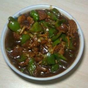 成品,品尝后,腰花还好,很嫩,可柿子椒炒老了,看着色重,不香
