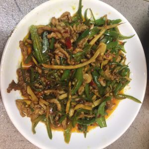 放入青椒丝爆炒,大火炒至断生。图片放错了。。。暂时替代